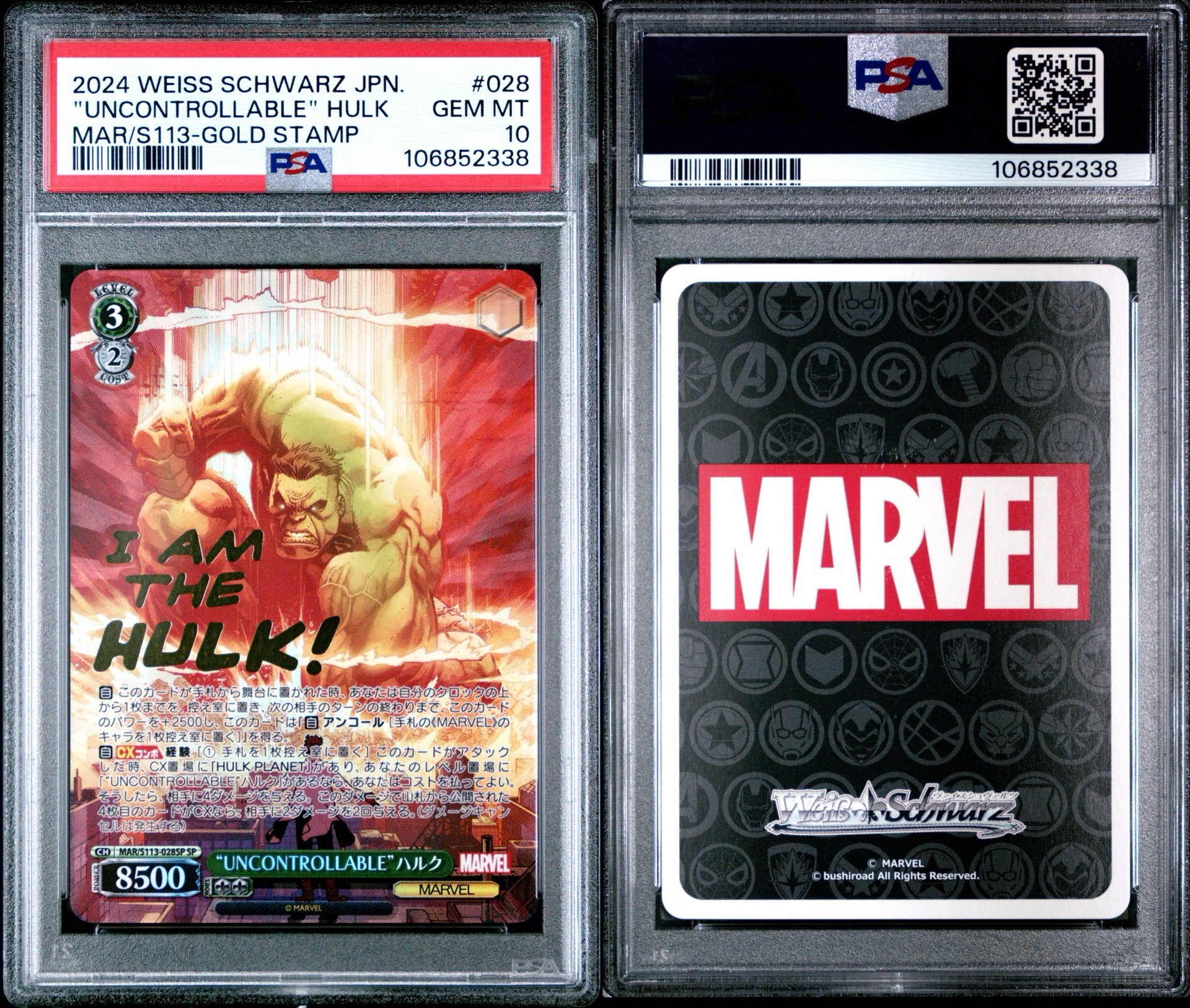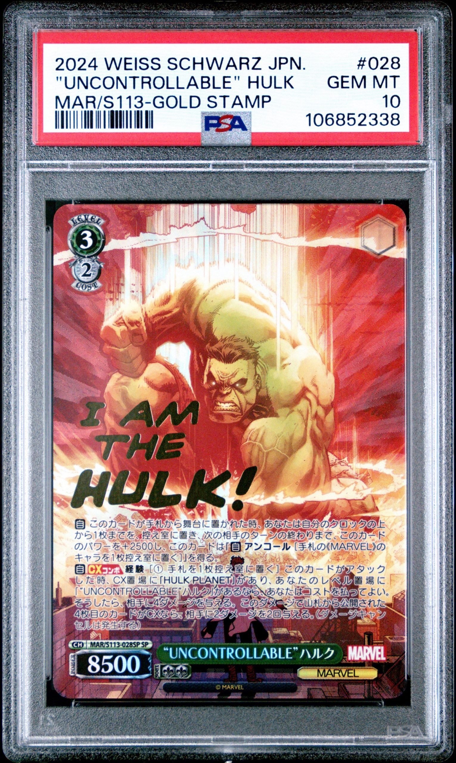 2024 WEISS SCHWARZ JAPANESE MARVEL VOL.2 #028 “UNCONTROLLABLE” HULK MAR/S113-GOLD STAMP